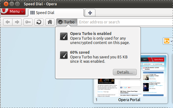 When Opera Turbo – Opera’s compression technology to help pages load faster on slow networks – the badge also adds in stats about estimated data savings, etc.