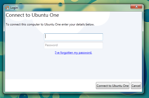 Setting up your Ubuntu One account after installation is just as easy on Ubuntu: you open the app, enter your Ubuntu One sign in details and connect.