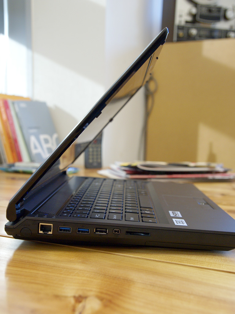 I’ve never seen a nicer screen on a laptop. The Serval Professional comes standard with a 1920 x 1080 super glossy LCD, with an option for matte for $100 extra. The screen has an impressively wide brightness range, and there’s a nice fade when changing between brightness levels. A function option that turns the screen backlight entirely off might be useful for some people.
