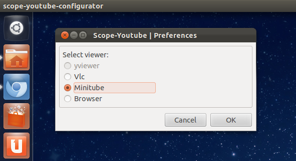To set ‘Minitube‘ as your preferred player for YouTube videos launched in the Lens you will need to use the ‘YouTube Scope Configurator’ tool.
