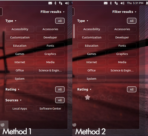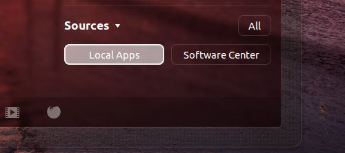 The first method is the easiest: just open the Dash, head to the Applications Lens and click on Local Apps‘ under the ‘Sources’ section in the Filter bar to hide app suggestions.