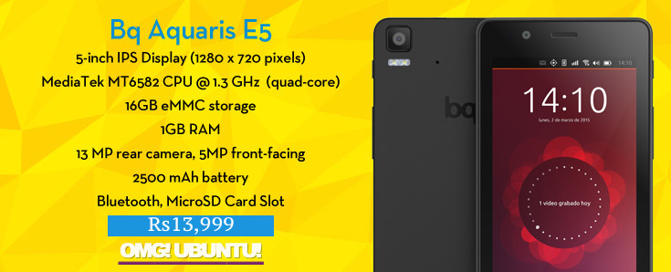 The 5-inch, 16GB Bq Aquaris E5 costs from MSRP ₹13,999 (excluding shipping or other fees).
