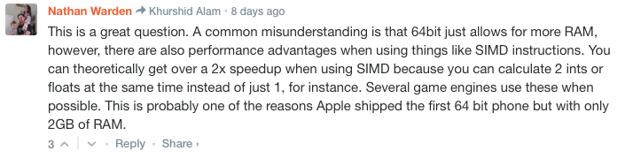 Plenty of lively discussion took place in the comments section, including some insightful tutorage on the benefits of 64-bit CPUs: