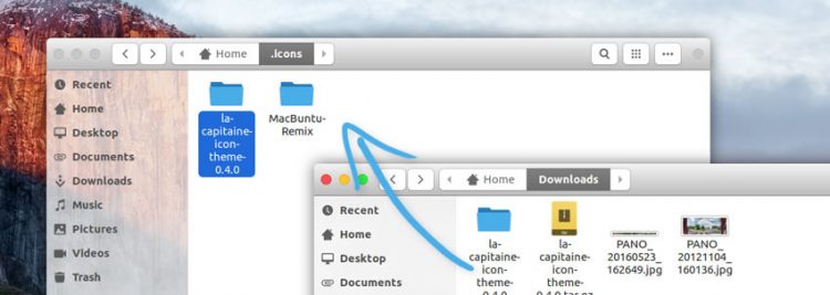 Once you’ve downloaded your chosen theme from the link(s) above you need to install it. To do this first extract the contents of the archive you download, then move the folder inside to the ~/.icons folder in your Home directory.