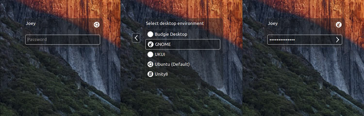 Once both installations are complete you need to logout and select the ‘GNOME Shell’ session from the Unity Greeter: