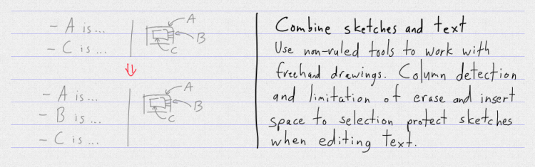 - Easily insert blank spaces with automatic paragraph reflow