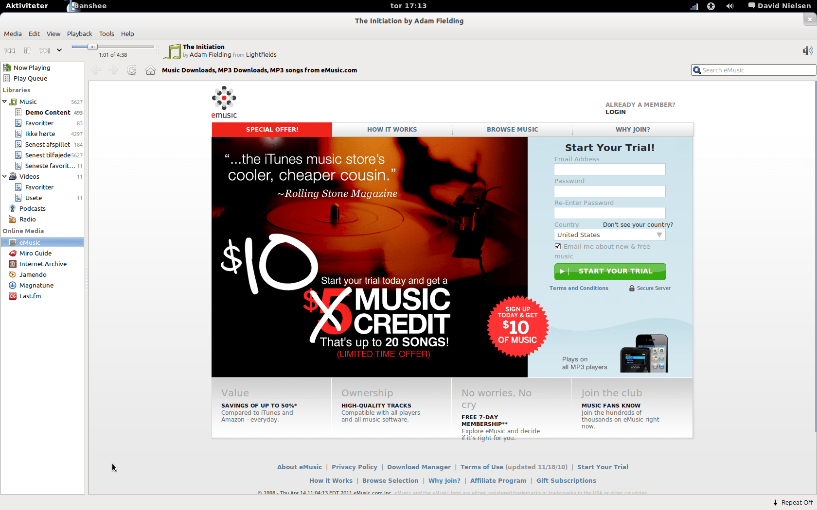 If you want new stuff without compiling on your own, the daily builds have just gotten initial integration with the eMusic music reseller. Like with the Amazon MP3 and Jamendo integration downloads will automatically be added to your library and streaming will be performed through Banshee.