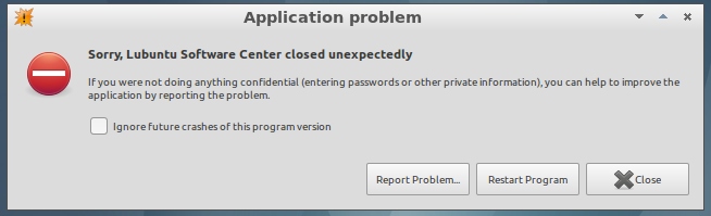 Bugs should be reported over on the launchpad project @ bugs.launchpad.net/lubuntu-software-center