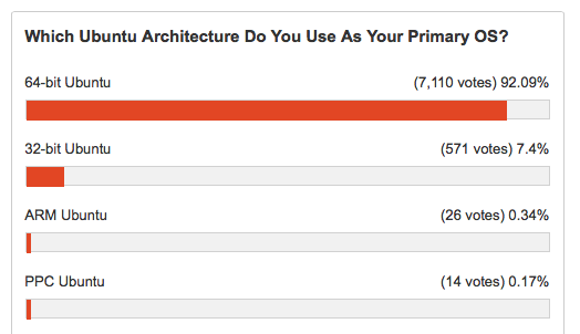 But the poll was clear that it was asking about the architecture of Ubuntu that you use on your primary device, i.e., the one you use most often.