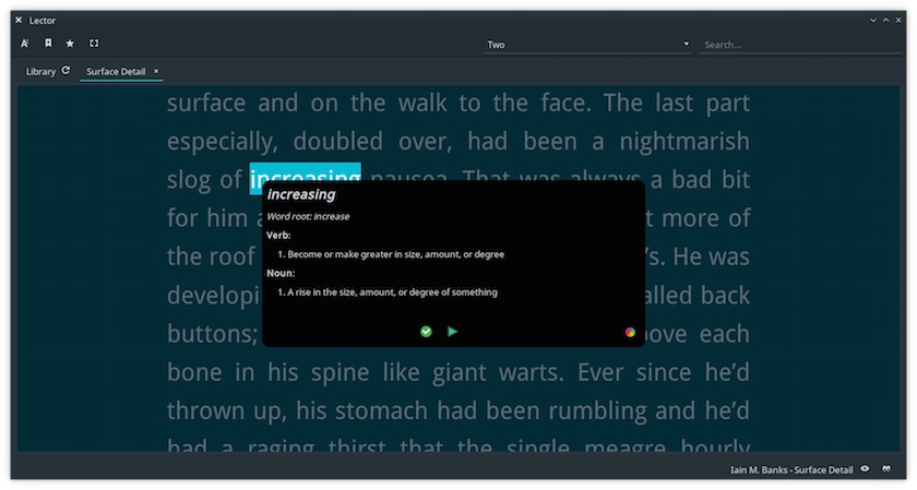 Lector also has has an in-app dictionary. This lets you quickly find an accurate definition for any word you encounter without needing to leave the app.
