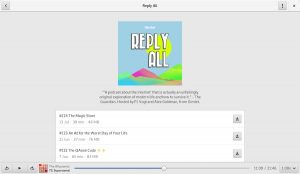 The omnipresent play bar (courtesy of GNOME Music) stays with you, allowing you to browse around and view other podcasts without stopping the one you’re listening to.